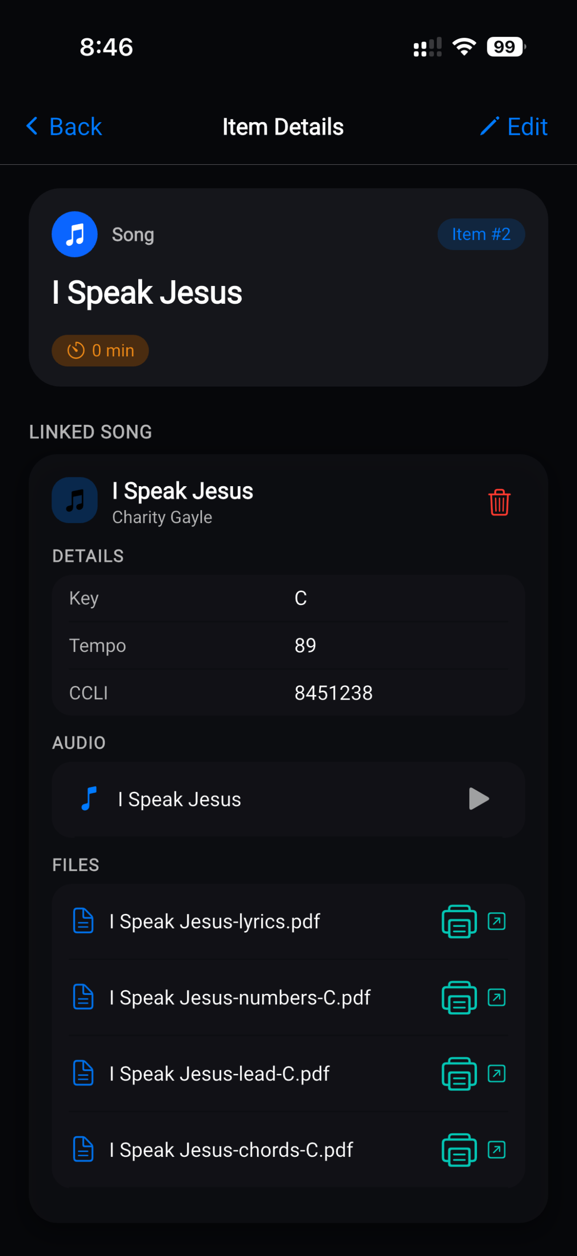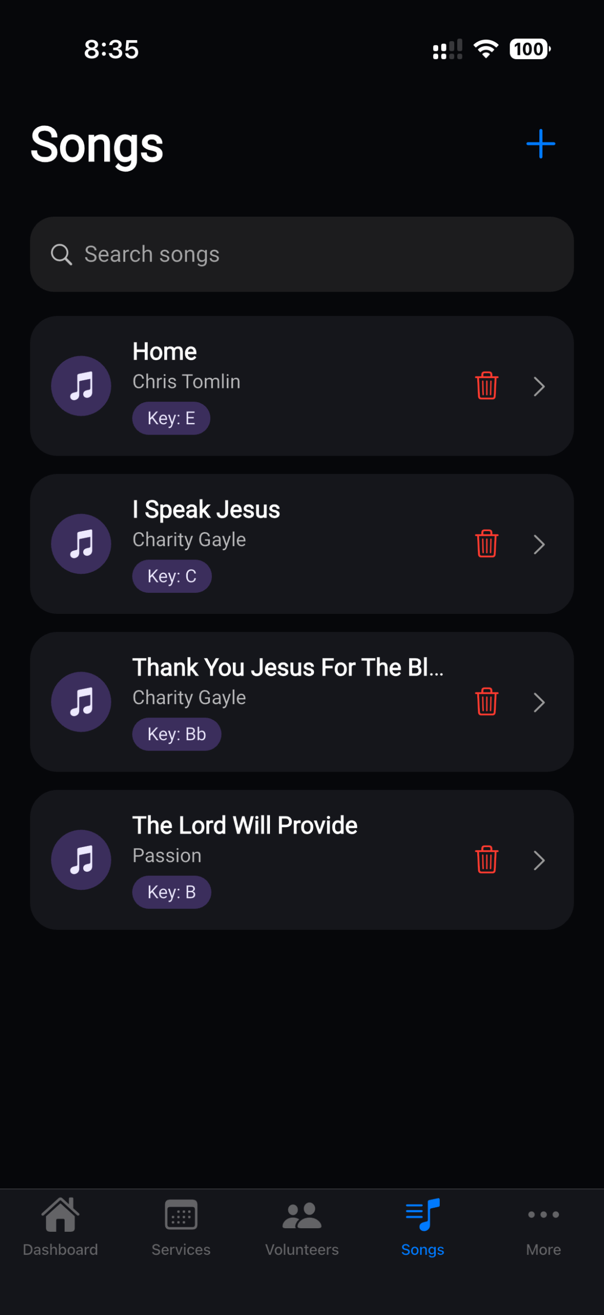 Duplicate existing service plans to save time, or build each one from scratch with unique details. All services are neatly organized by date and time, giving your team a clear picture of what’s happening across your entire worship schedule. With everything centralized, your worship leaders, musicians, and tech teams always know exactly where they need to be and what they need to prepare for.