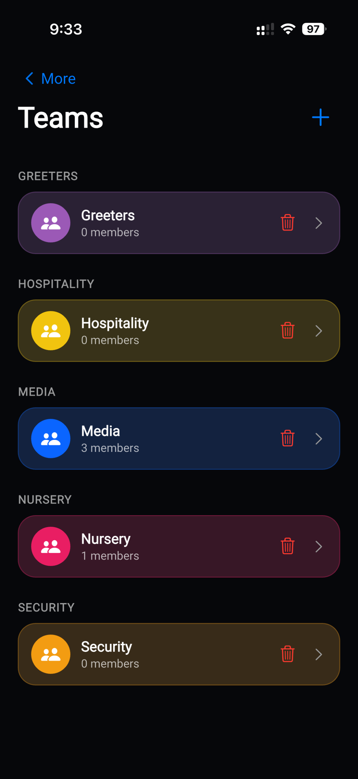 Schedule volunteers according to their ministry teams—Nursery, Hospitality, Ushers, Tech, or any custom team your church creates. Each ministry can have its own set of roles, making the scheduling experience tailored to how your church actually operates.