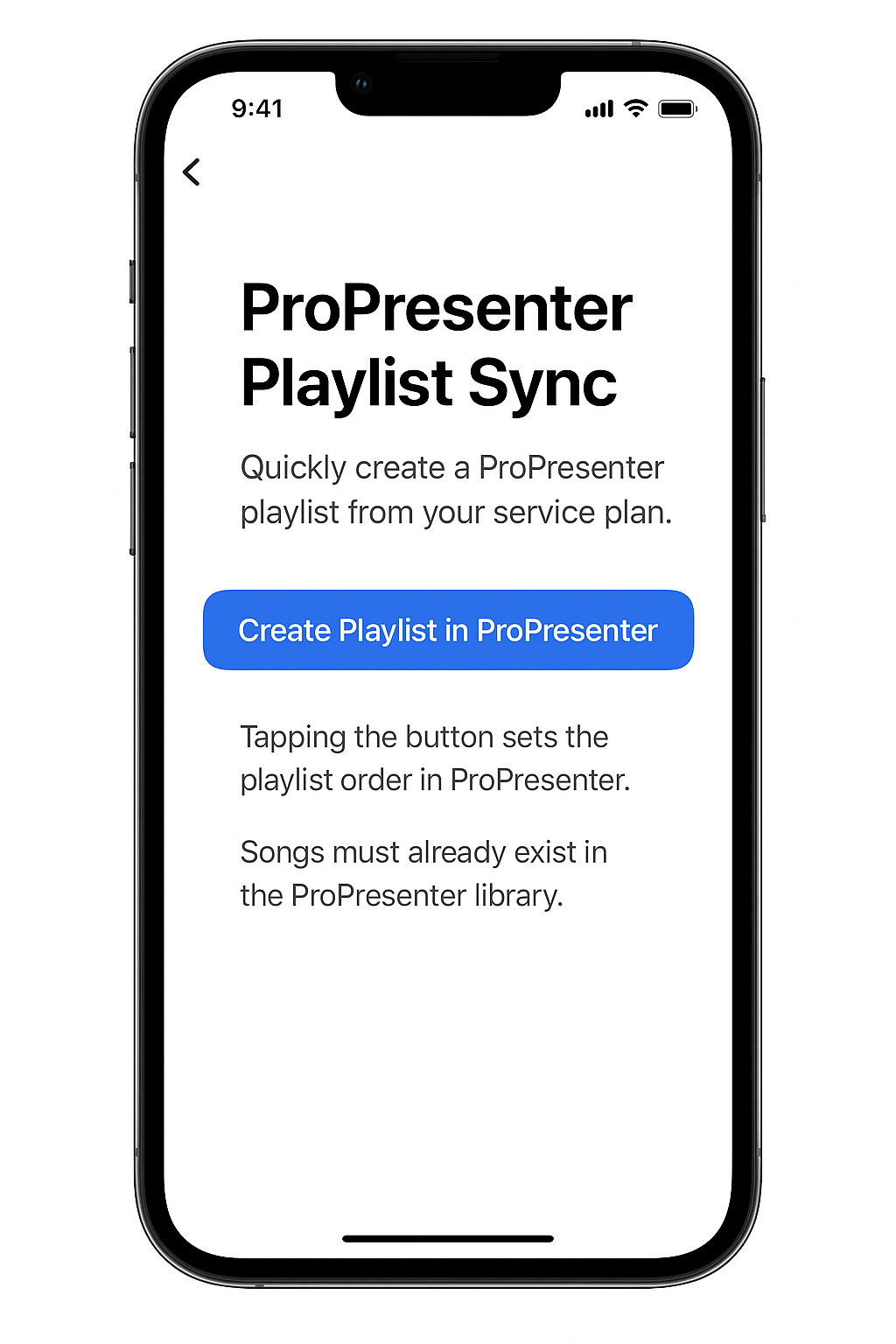 With this new integration, you’ll be able to take the exact order of songs from your Worship Schedule service plan and instantly build a matching playlist inside ProPresenter with just one click. No more manually dragging songs into place or rebuilding playlists every week.