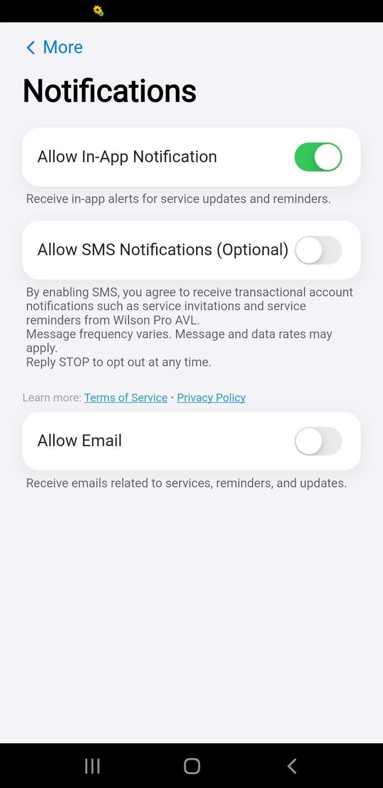 Wilson Pro AVL sends optional SMS account notifications related to service invitations and scheduled service reminder notifications.